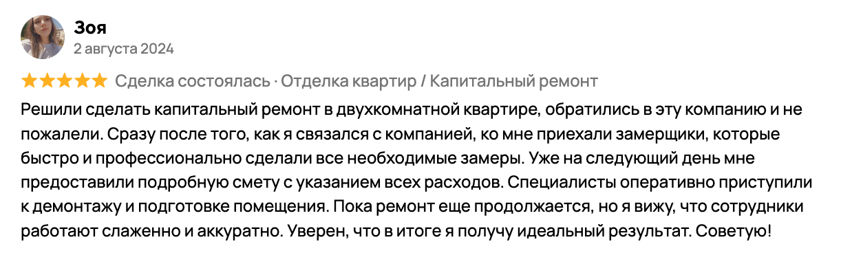 Отзывы клиентов о работе с нами